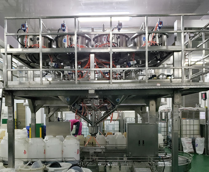 液体小料自动称量配料系统专用于多种液体原料的配料称量,主要由原料储桶、配料主机、操作控制软件构成,设备可自动向配料主机补充原料,配料精度±10g。可应用于食品、医药等行业。