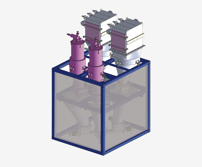 失重式自动配料秤用于对粉末、颗粒等散料进行稳定可靠的连续称重配料,可应用于电力、制药、食品、塑料、陶瓷、化工和建材等行业。本系统将多个失重秤组合在一个机体中,结构紧凑、占用空间小,以气力输送方式向料仓补料,采用进口国际品牌称重显示器及重量传感器,流量稳定、精度高。