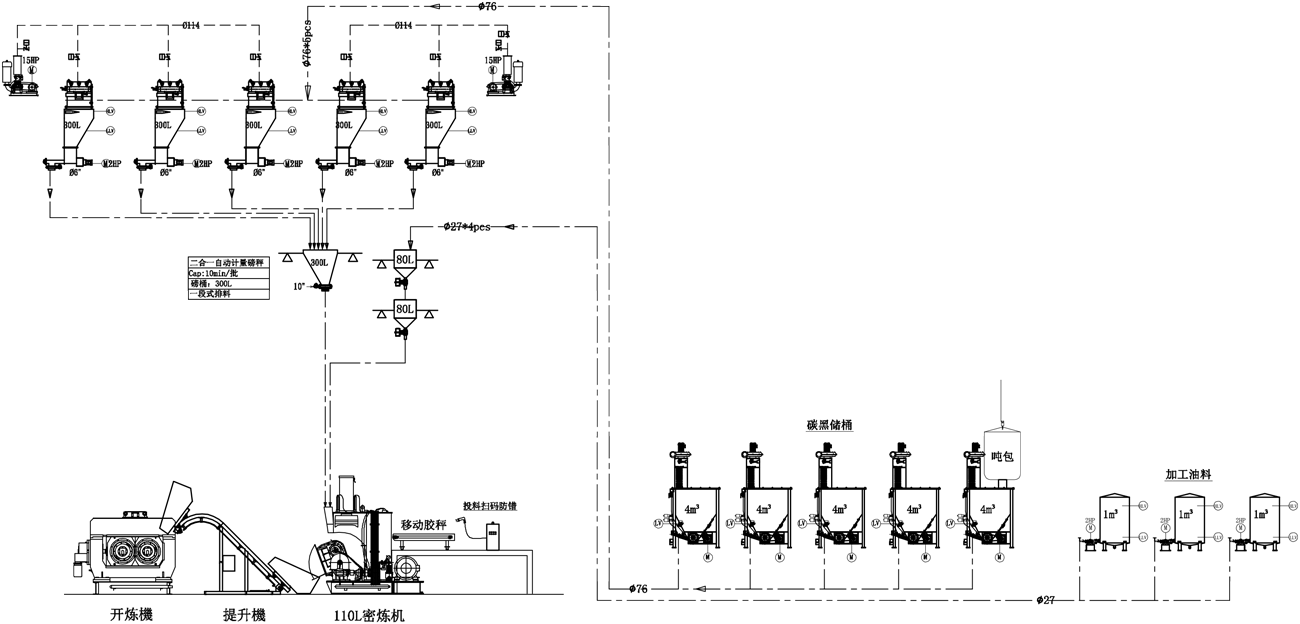 翻斗式密炼机产线配置图